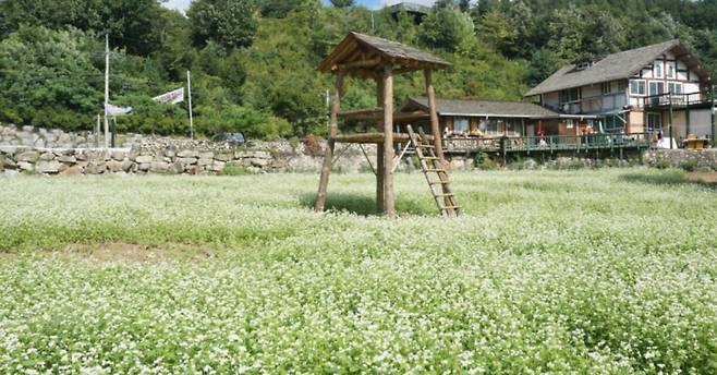 마을 곳곳에 조성된 전통 한옥들은 메밀꽃밭과 어우러져 그림같은 풍경을 연출합니다.