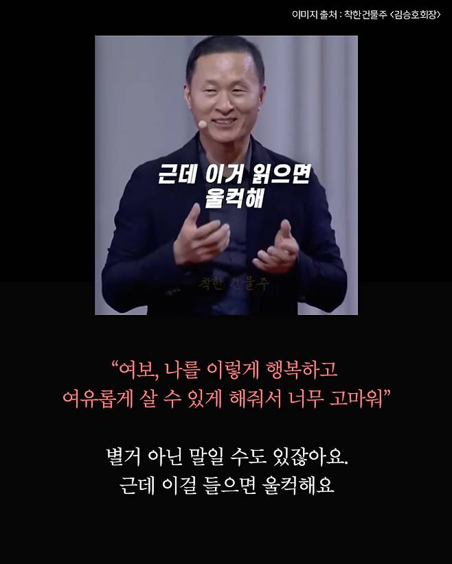 ”그 말을 들으면 울컥해요” 김승호 회장을 울컥하게 만든 아내의 말