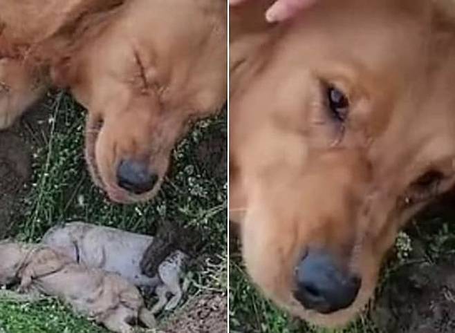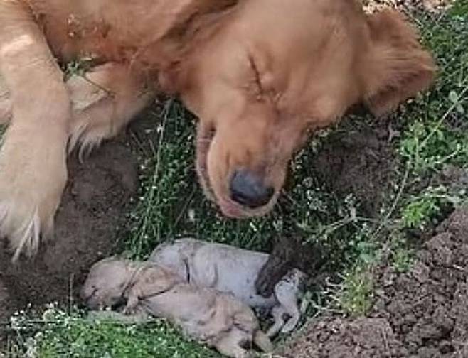 하지만 현실은 너무 냉혹했습니다. 새끼 2마리는 이미 싸늘해져 있었던 것. 주인은 어미개가 보지 못하는 곳에서 죽은 새끼들을 땅에 묻어주려고 했습니다.