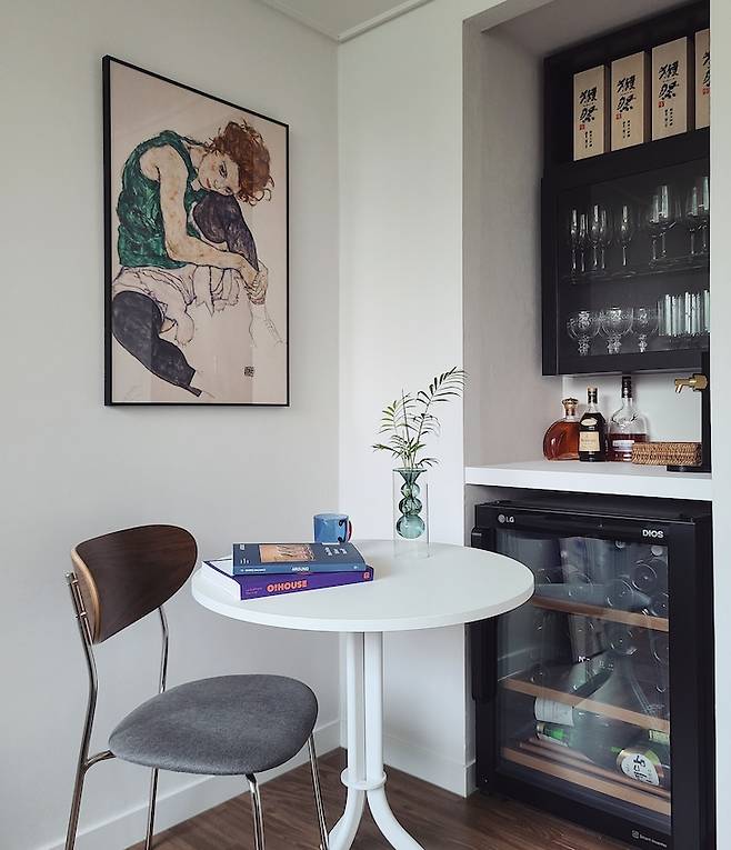 와인을 부부의 취미로 삼으니 같이 할 수 있는 것들이 생각보다 많더라구요. 자연스럽게 홈바 공간에서 둘이 오붓하게 와인을 즐기며 대화하는 시간도 늘어났어요. 와인의 힘이랄까요.
