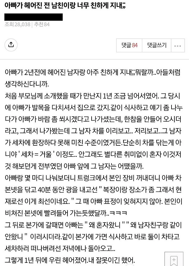 헤어진 전 남친이랑 너무 친하게 지내는 아빠