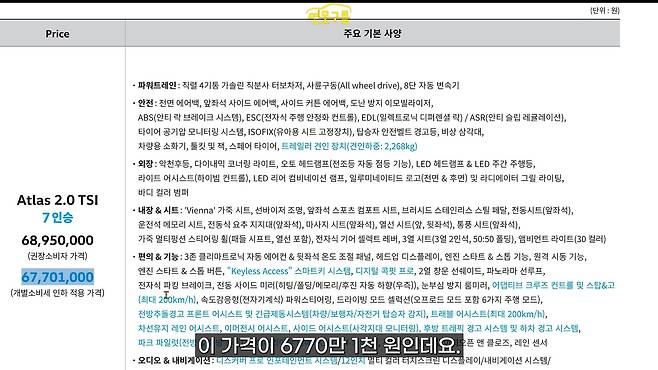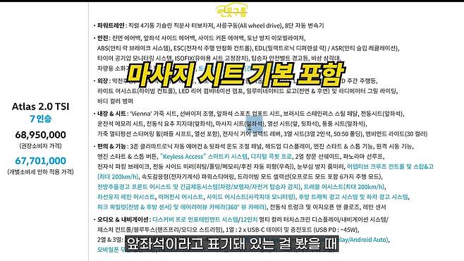 예상보다 아틀라스가 괜찮게 나왔고, 특히 가격이 괜찮았다고 생각합니다. 6,700만 원대의 수입차이면서 사륜 구동 기본 포함, 히치 옵션, 헤드업 디스플레이, 하만카돈 오디오 시스템 등 편의 사양도 부족함이 없고요. 다시 한번 강조하지만 5년 15만 킬로미터 보증은 정말 중요한 부분입니다.