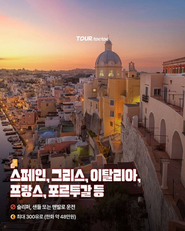 지중해권 주요 국가 전역에 적용되는 도로교통법 규정입니다. 슬리퍼, 샌들 또는 맨발로 운전하면 최대 300유로(약 48만원)의 벌금이 부과됩니다.
