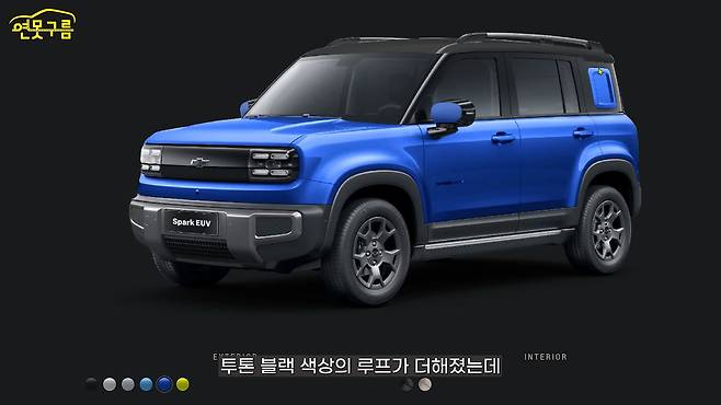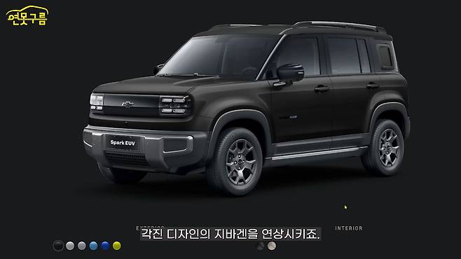 스파크 EUV는 일본의 대표적인 소형 SUV인 짐니를 연상시키는 전면부 디자인과 포드 브롱코를 떠올리게 하는 후면부가 특징이다. 기본 페인팅에 데칼 스티커만 추가해도 완전히 다른 느낌의 차량으로 변신이 가능하다는 점도 주목받고 있다.