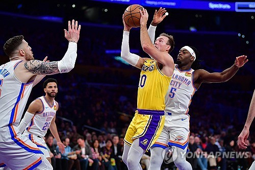9일(한국시간) 미국 캘리포니아주 로스앤젤레스 크립토닷컴 아레나에서 열린 NBA 2025-2026시즌 정규리그 레이커스와 오클라호마시티 썬더의 맞대결.