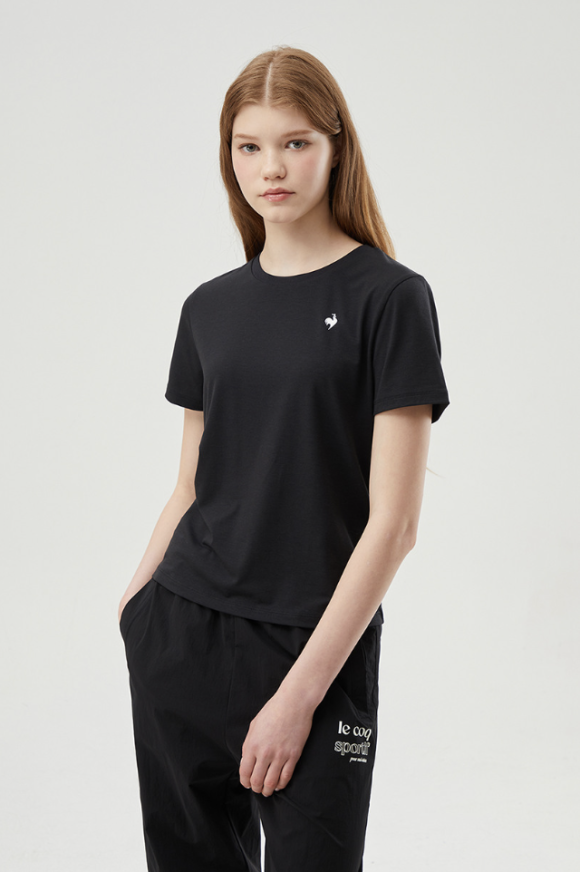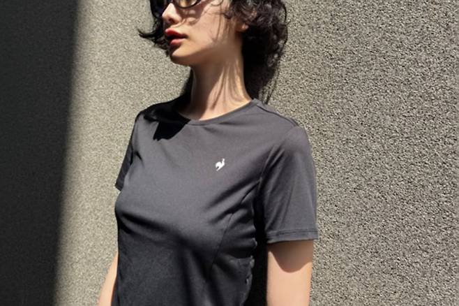 그녀가 선택한 아이템은 LE COQ SPORTIF의 "여성 냉감 기능성 레귤러핏 반팔티 블랙(QP222ORS41)"이다.