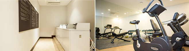 또한 객실 내부에는 온도 조절기, 에어컨, 커피메이커, 가운, 슬리퍼, 비데, 욕조, 헤어드라이어, 세면용품, 50인치 케이블 TV, 냉장고, 생수, 금고 등의 물품이 잘 구비되어 있습니다. 이외에도 호탤 내에 부대시설의 경우 피트니스 센터와 컴퓨터 스테이션, 비즈니스 센터 시설이 갖춰져 있고, ATM기기나 공용 전자레인지, 세탁 시설도 이용 가능하다고 합니다.