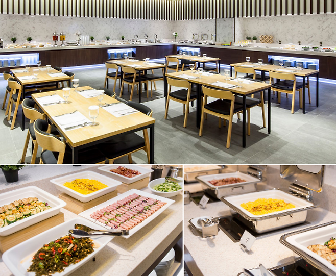 호텔 더본의 큰 자랑거리 중 하나는 조식 뷔페 레스토랑 '탐모라' 인데요. 탐모라에는 수제 베이컨으로 직접 만들어 먹는 브리또와 에그 베네딕트 등 듣기만 해도 군침 도는 매력적인 조식 메뉴들이 준비되어 있다고 합니다. 160여 석의 충분한 좌석은 물론이고 한식과 양식, 일식, 중식까지 다채로운 요리가 준비되어 있어 즐거운 아침 식사를 즐길 수 있다고 하네요.