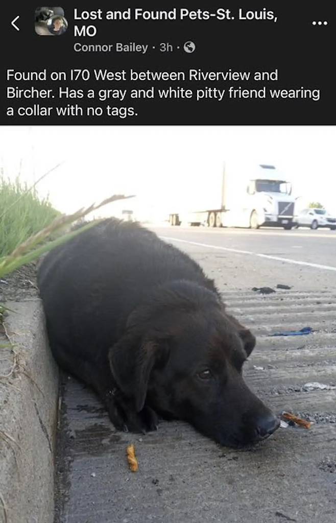 콘너 베일리라는 사용자가 고속도로 옆에서 다친 검은색 강아지를 발견했다는 내용이었다.