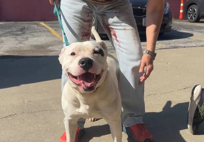 “회색과 흰색 핏불 친구가 목줄만 차고 있었어요 이름표는 없었고요” 베일리는 글에 이렇게 남겼다.