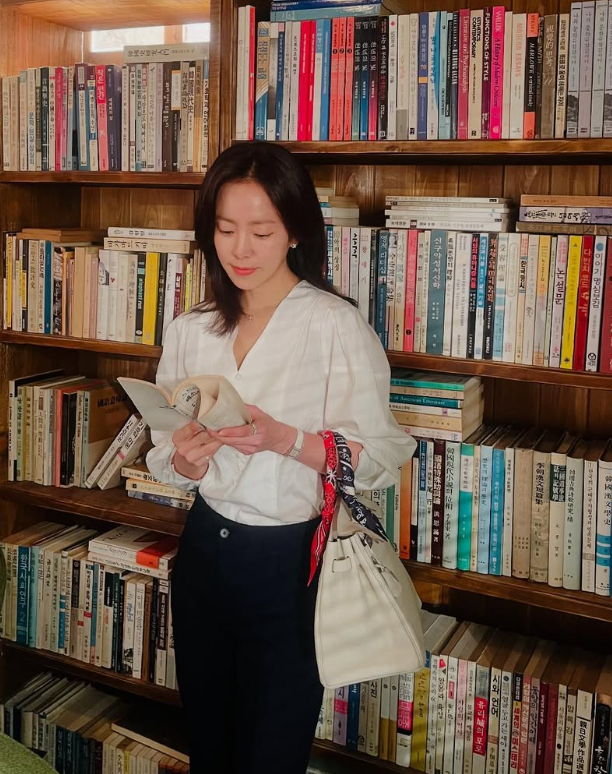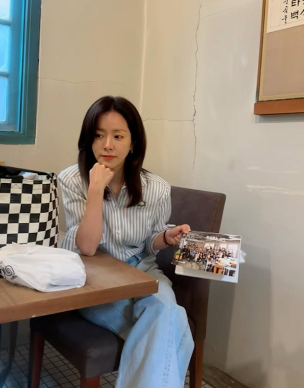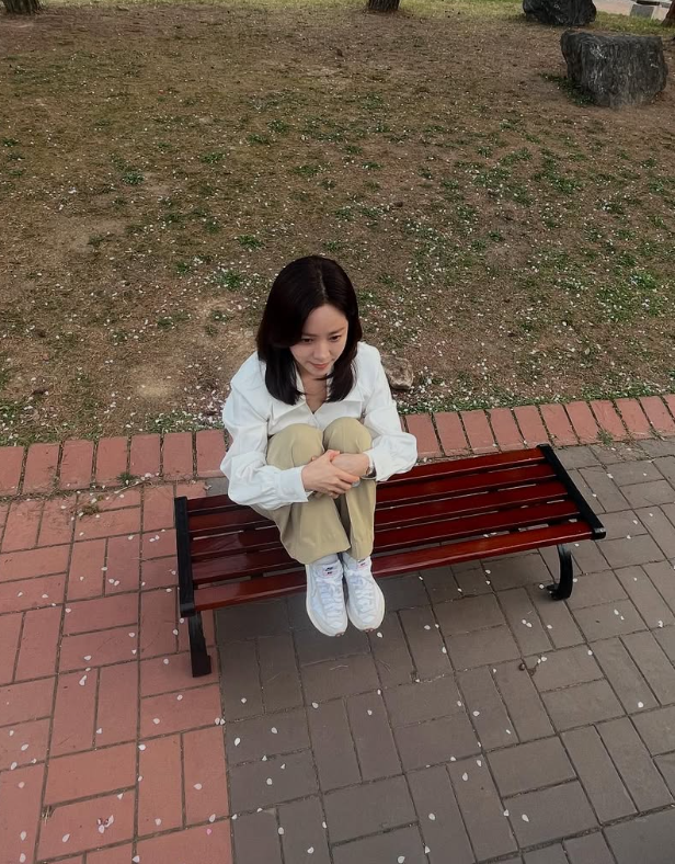 화이트 셔츠에 베이지 팬츠로 단정한 일상룩을 보여주기도 했는데요. 다리를 모으고 앉아 있는 포즈가 너무 러블리하신 배우님..!