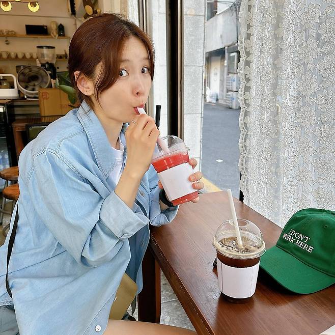 카페에서 포착된 전미도는 오버사이즈 연청 셔츠와 화이트 티셔츠, 그리고 캐주얼한 쇼츠로 내추럴한 데님룩을 연출했다. 무심한 듯 자연스럽게 연출된 헤어와 상큼한 음료, 그리고 ‘I DON’T WORK HERE’ 문구가 새겨진 그린 볼캡이 유쾌한 분위기를 더한다.