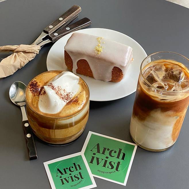 쫀쫀한 크림이 인상적인 아인슈페너 맛집 '아키비스트'. 주말이나 휴일에 방문하면 웨이팅이 기본일 정도로 인기있는 집이다. 이 집의 인기요소는 바로 아인슈페너. 서울 3대 아인슈페너라고 불릴 정도로 인기가 많다. 취향에 따라 핫, 아이스 모두 주문이 가능한 아인슈페너는 쫀쫀하고 탱탱한 크림이 올라가 있고 숟가락으로 크림만 먼저 떠먹으면 꾸덕하고 묵직한 크림이 부드럽고 은은하게 입안에 퍼진다. 크림 밑에 있는 커피는 라떼로 텁텁하지 않고 달콤한 크림과 매우 잘 어울린다.