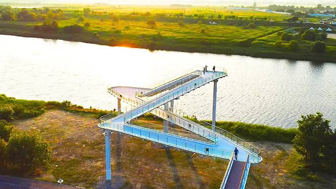 서창감성조망대의 가장 큰 특징은 하늘에서 내려다봤을 때 '뫼비우스의 띠' 형상을 하고 있다는 점입니다.