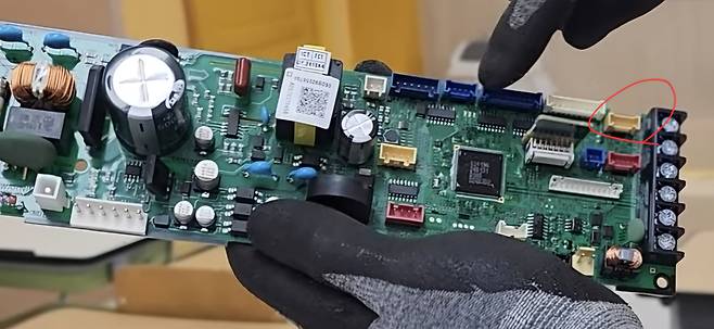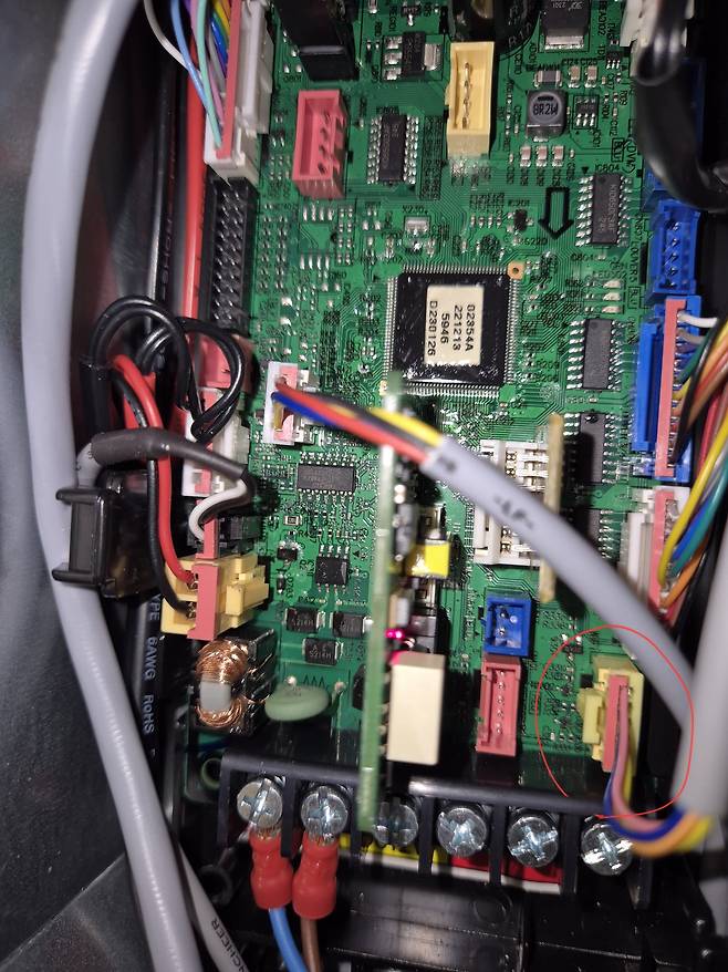 셀프로 삼성 천정형에어컨 청소하고 조립후 에어컨 와이파이가 안되는거 같습니다 (사진좀 찍어놓을껄ㅠㅠ) 빨간동그라미부분이 와이파이 케이블 꼽는곳이 맞나요?