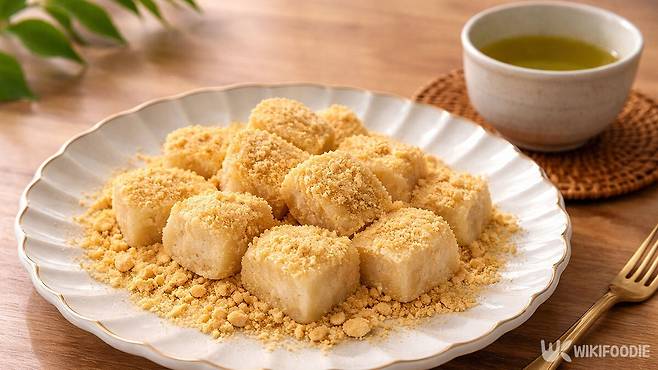 - 콩가루를 접시에 충분히 깔아주어야 떡이 바닥에 붙어 모양이 망가지는 것을 막는다.