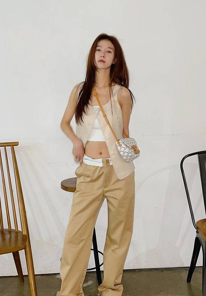 공개한 사진에서 김소은은 청순한 비주얼과는 달리 베이지 로우라이즈 팬츠와 배꼽이 드러난 화이트 크롭 톱에 단추를 하나만 채운 스퀘어넥 조끼로 힙하면서도 섹시한 Y2K 스타일을 완성했다.