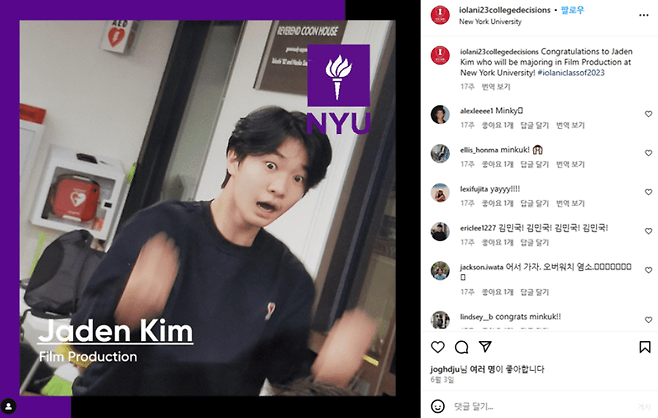 한 SNS에 “뉴욕대학교 영화제작과를 전공하게 된 Jaden Kim 축하한다(Congratulations to Jaden Kim who will be majoring in Film Production at New York University!)”라는 글이 올라오며 김민국의 사진이 함께 공개돼 '아빠 어디가?'의 맏형이었던 민국이 뉴욕대에 입학한다는 추측이 제기된 바 있습니다