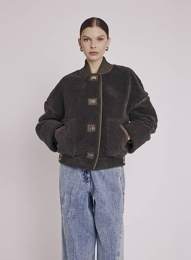 프렌치 컨템포러리 브랜드 '베르니스(BERENICE)'의 페이크 퍼 양털 재킷은 톤온톤 트리밍 포인트가 돋보이며 노카라로 캐주얼한 겨울 데일리룩으로 안성맞춤이다.