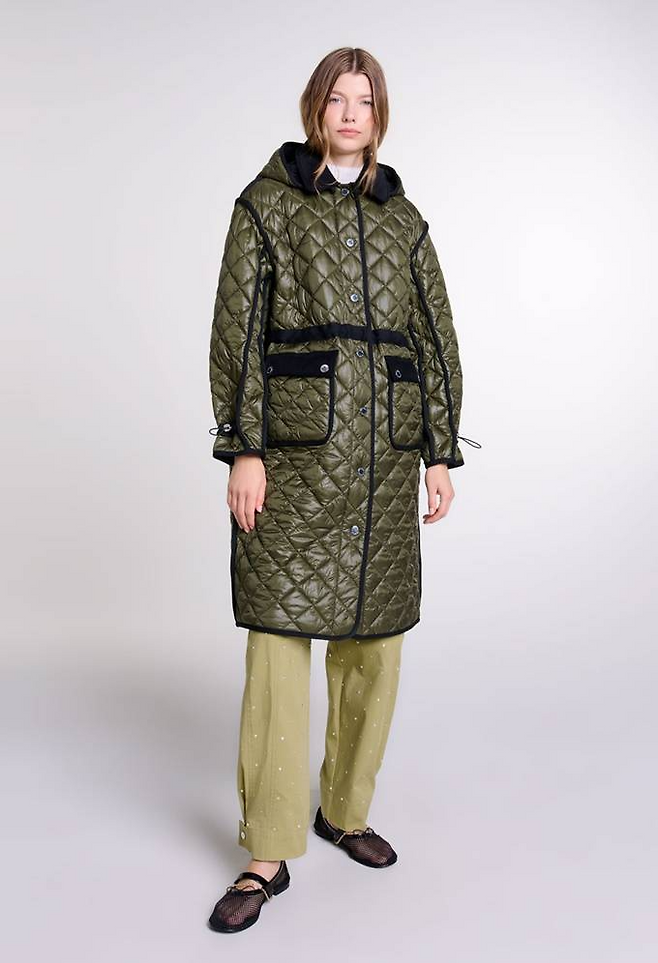 프렌치 컨템포러리 브랜드 '마쥬(MAJE) 퀼팅 후드 패딩 코트는 코듀로이와 니트 소재 조합으로 감각적인 디자인의 캐주얼한 분위기를 강조했다.