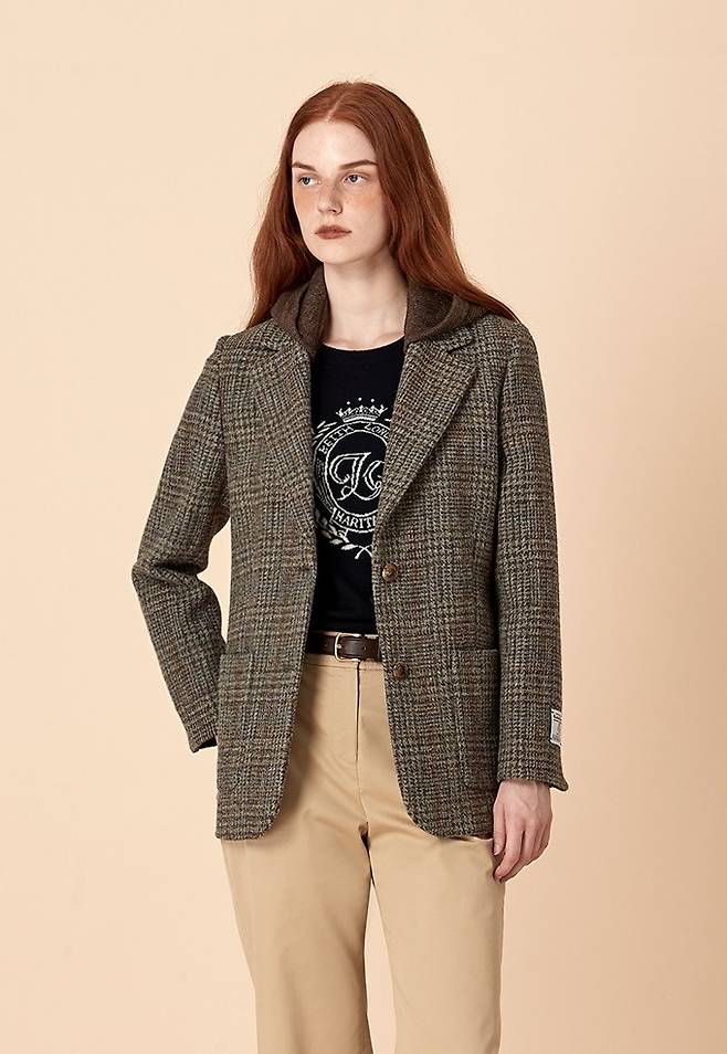 브리티시 무드의 은은한 체크패턴으로 포인트를 준 싱글 재킷으로 포근하고 따뜻한 착용감을 지닌 헤어리한 100% 울 소재를 사용해 보온성을 높였다.