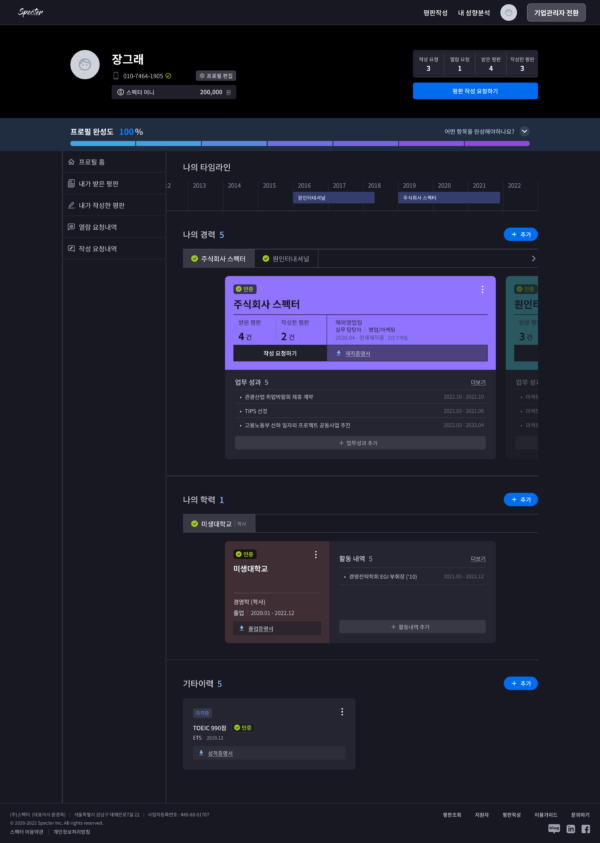 최근 스펙터는 구직자를 위한 커리어 통합관리 서비스 ‘마이스펙터’를 새롭게 출시했는데요. 구직자가 평판을 포함한 모든 이력을 스스로 관리할 수 있게 한 겁니다.