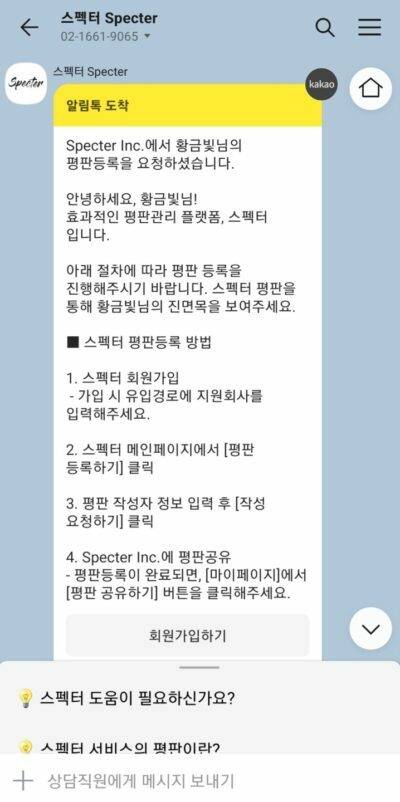 일단 간단하게 소개하면 스펙터는 구직자의 이름과 전화번호만 입력하면 구직자의 평판을 조회할 수 있는 서비스입니다.
