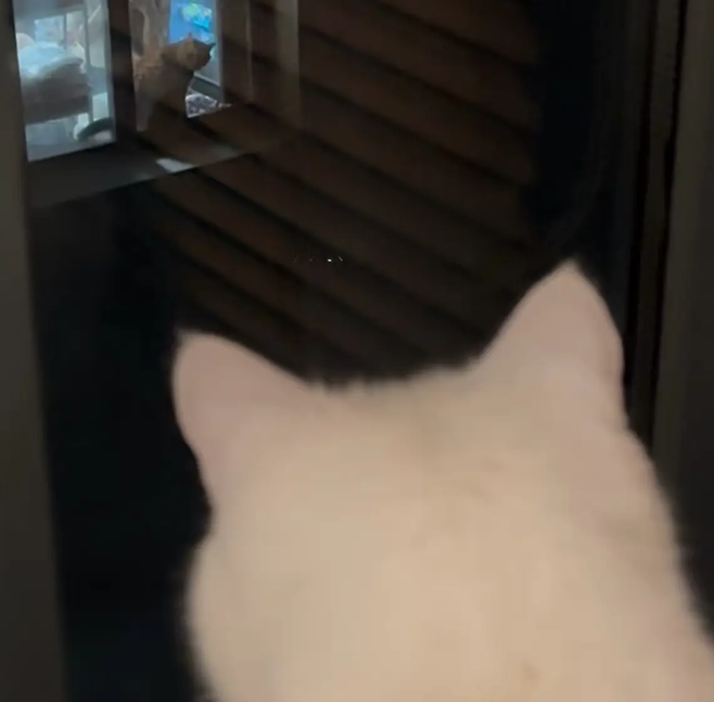 그래서 안전을 위해 창문이 있는 방을 잠가두었었는데, 대백이의 사연을 알게 된 후 창문을 깨끗이 닦아주고 두 고양이가 다시 만날 수 있게 해 주었습니다.