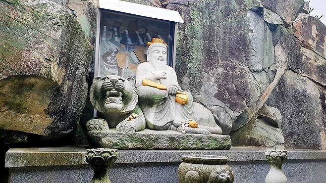 산신각에 들어서면 정취암의 또 다른 보물, 산신탱화가 눈에 들어옵니다. 자연을 배경으로 한 산신의 위엄과 함께 전해지는 섬세한 붓터치는 단순한 신앙의 상징을 넘어 예술 작품으로서의 가치를 품고 있습니다.
