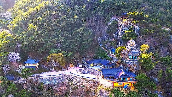 전설에 따르면 동해에서 솟아오른 아미타불의 빛이 대성산 절벽을 비추며 이곳의 신비로운 기운이 시작됐다고 전해지는데, 그 신비는 실제로 이곳에 서 보는 순간 온몸으로 느껴집니다.