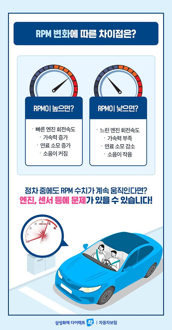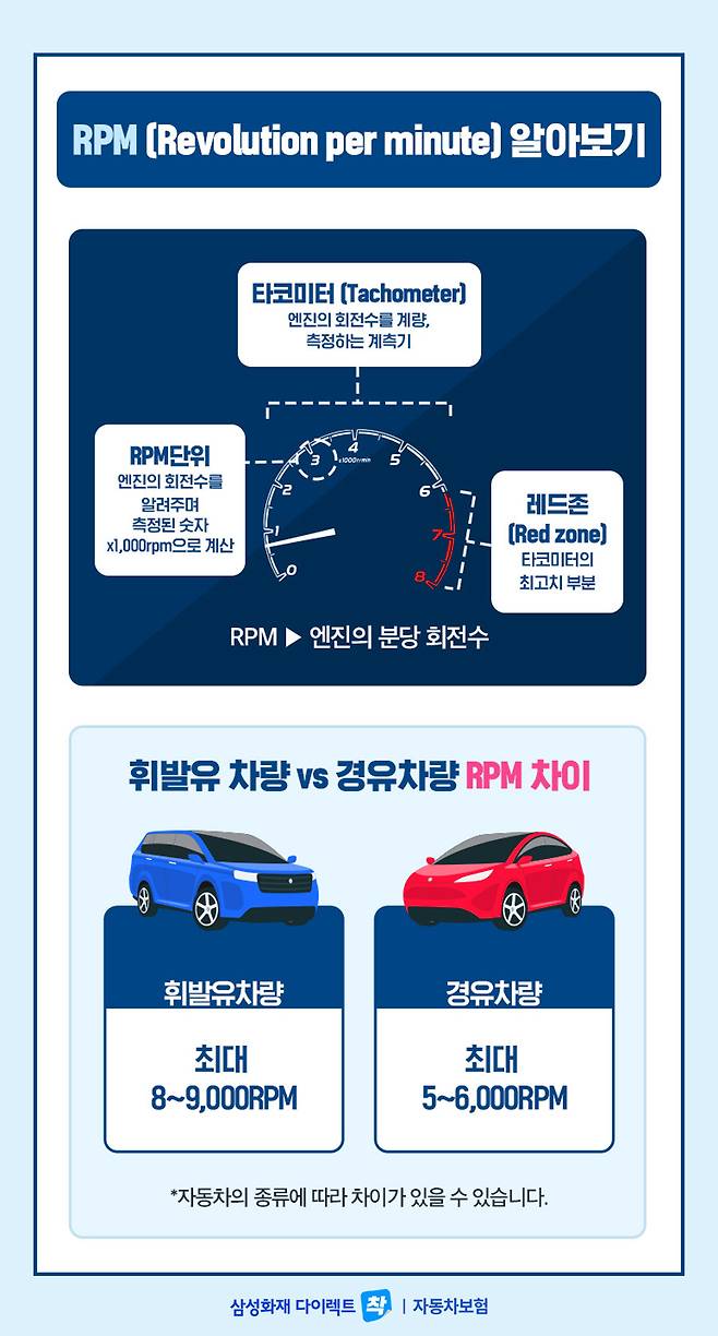 RPM이 높으면 - 빠른 엔진 회전속도로 가속력이 증가하고 연료 소모도 높아집니다. 그에 따라 엔진의 소음 역시 커진다는 특징이 있습니다.
