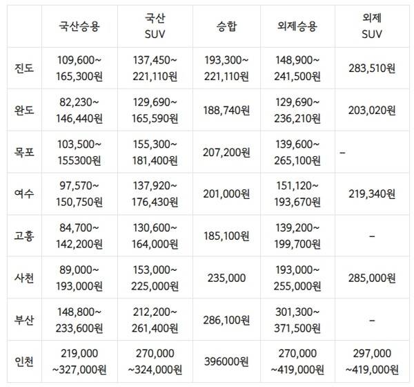 4. 제주 배편 차량 선적 비용
