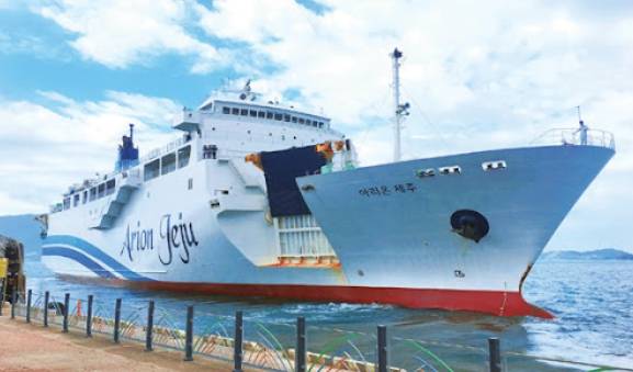 고흥 녹동항에서 출발해 제주항까지 운행하는 아리온제주은 3시간 30분이면 제주에 도착합니다. 고흥발 제주행은 매일 09:00출발 12:30도착을 하며, 제주발 고흥행은 매일 16:30출발 20:00도착을 합니다. 아리온제주 역시 차량 선적이 가능하며 작은 배편이라 기본적인 매점 외 특별한 부대시설은 갖추고 있지 않습니다.