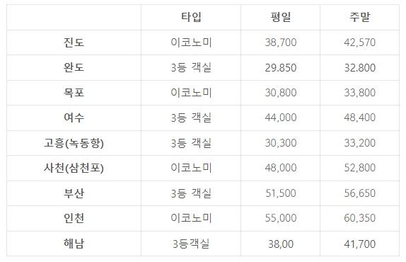 3. 제주도 배편 요금 비교