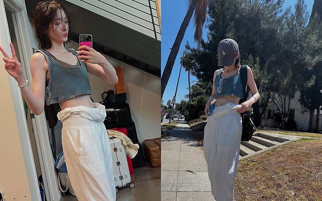 배우 박지현이 종잇장 몸매가 돋보이는 일상룩을 선보였다.
