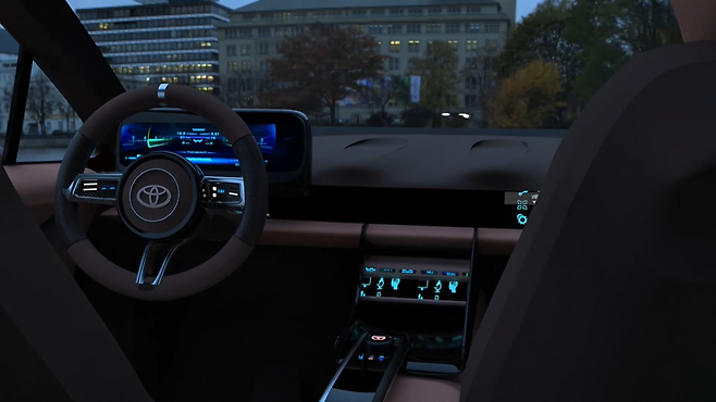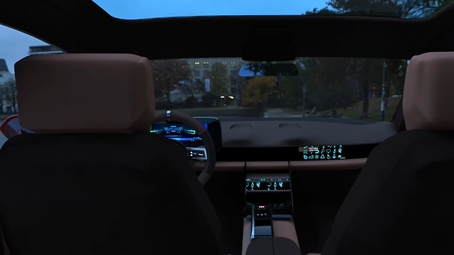 실내로 이동하면 운전석에 대한 상당히 급진적인 콘셉트를 확인할 수 있다. 슬림한 센터 콘솔에는 자동변속기용 작은 다이얼이 있고, 기후 제어를 위한 넓은 스크린이 배치되어 있다.