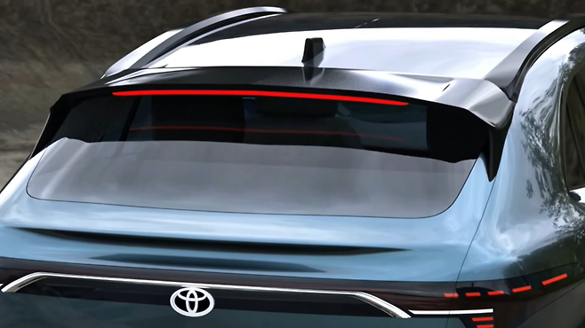 후면부는 일반적인 크로스오버보다는 쿠페-SUV 스타일을 채택했다. 큰 루프 스포일러와 통합된 블랙 디퓨저가 적용된 조각 같은 범퍼가 인상적이다. 후미등 클러스터는 T자 형태를 취하고 있으며, 2026년형 RAV4의 스타일을 계승해 수평과 수직의 작은 빨간색 라인들을 유지하고 있다.