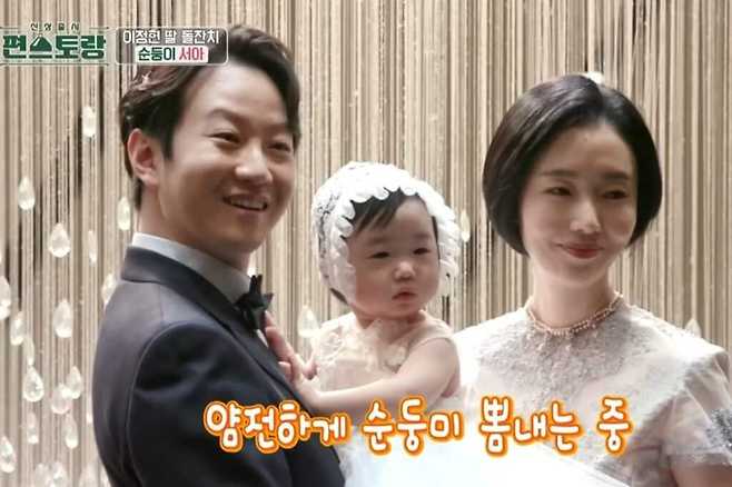 KBS 2TV ‘신상출시 편스토랑’에서는 가수 겸 배우인 그녀와 정형외과 의사 남편 박유정과 함께 딸 서아의 돌잔치 장면이 방송됐다.