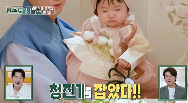 ‘편스토랑’에 출연하는 딸 서아가 돌잔치에서 청진기를 들고 부모를 기쁘게 했다.