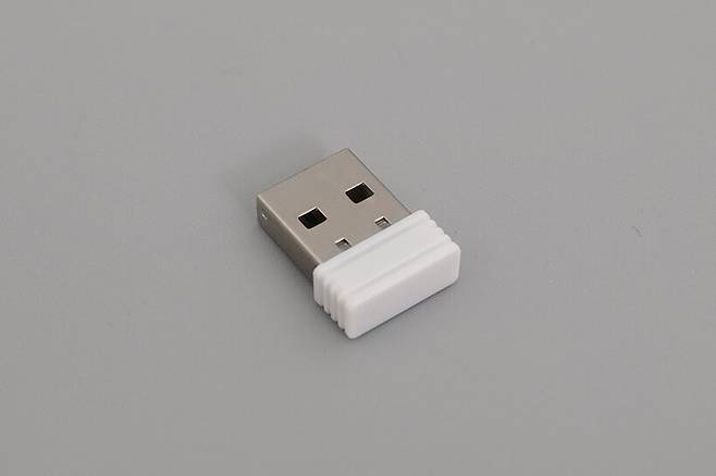 무선 리시버는 USB 방식으로, 상당히 작고 설치 시 돌출되는 부분도 작아서 노트북에 설치할 때에도 크게 돌출되지 않아 불편 없이 사용할 수 있다.