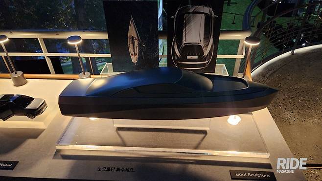 행사장 입구에는 개발 과정을 볼 수 있는 다양한 도면과 모델들이 전시되어 있었다. 그 중에서도 눈길을 끈 건 보트 모양의 모델로, 공기저항이 주행거리와 직결되는 전기차인 만큼 이를 최소화할 수 있는 방안이 필요한데 디자이너들은 이를 보트의 디자인에서 가져온 것이다. 유선형의 차체는 파도를 가르면서 물의 저항을 최소화하는 유선형의 디자인을 사용하는 만큼 이번 아이오닉에도 이와 닮은 디자인을 채택했다는 것이다.