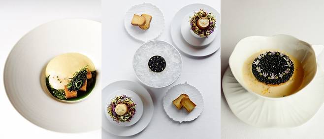 나는 2019년 오픈한 라망시크레에 초기부터 지금까지 드문드문 그러나 꾸준히 방문했어. 다 합하면 열 번 정도 되려나? 여긴 내가 개인적으로도 큰 애정을 가지고 있는 곳인데, 그 이유는 매번 방문할 때마다 기대감을 갖게 한다는 거야. 한 발치 떨어져 어떤 셰프와 음식, 공간의 발전을 온전히 체감하는 것만큼 지극한 즐거움이 없거든. 반년 뒤에 오면 또 무엇인가가 발전해 있는 곳은 의외로 흔치 않아서 말이야. 레스토랑의 주방에 들어가면 이곳의 모토인 ‘evolve’가 벽에 붙어 있는데, 단순한 단어이지만 손솁은 저 단어를 레스토랑의 변화로 증명해 내고 있지. 대표적인 것은 ‘캐비아와 계란’이라는 요리인데, 단순한 조합의 식재료이지만 플레이팅부터 디테일까지 매번 색다른 모습을 보여주고 있어.