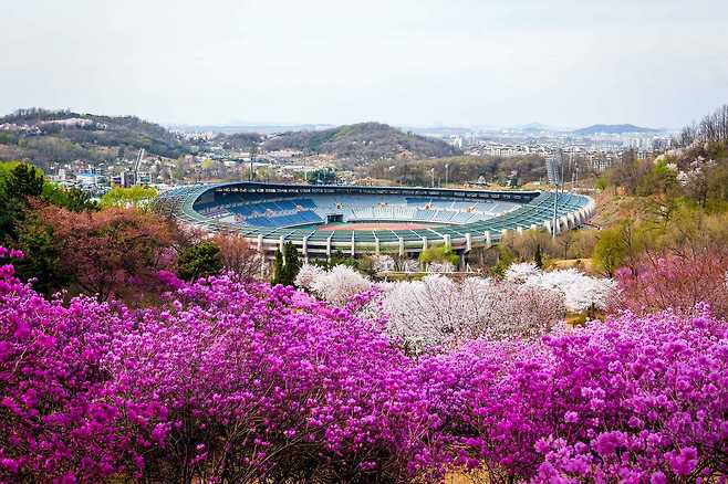 경기 부천시에 위치한 원미산 진달래동산은 봄이 되면 산 전체가 분홍빛으로 물드는 수도권 대표 꽃 명소다. 해발 167m의 원미산 자락에 자리한 이곳은 부천종합운동장을 중심으로 다양한 문화·레저 시설이 함께 조성된 복합 공원으로, 시민들의 휴식과 여가 공간으로 꾸준히 사랑받고 있다.