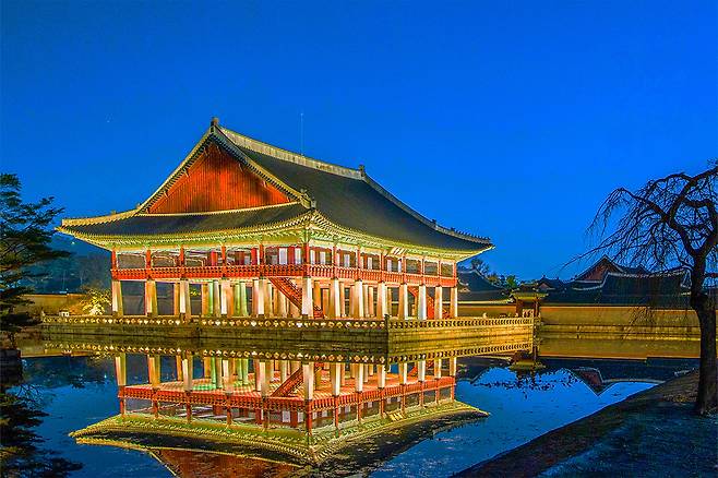 경복궁의 야경은 낮과는 또 다른 매력을 선사한다. 은은하게 조명이 비치는 근정전, 경회루, 사정전, 강녕전, 교태전, 아미산 권역을 거닐며 빛과 그림자가 어우러진 고즈넉한 궁궐의 정취를 오롯이 느낄 수 있다.