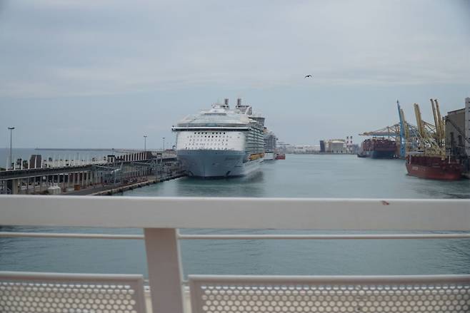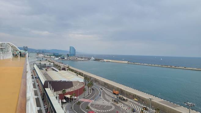 바르셀로네타 해변이 보이는 크루즈 터미널입니다.