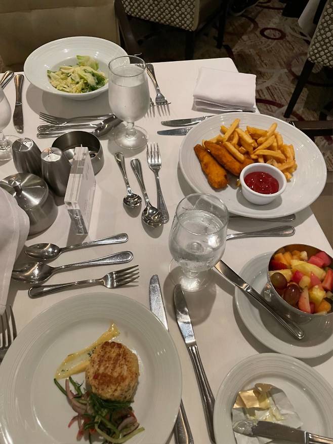 뷔페에서 어린이용 치킨너겟과 감자튀김 그리고 과일플레이트 정도 가져다 주길래...