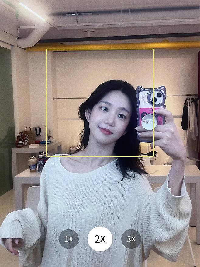 밝은 조도 아래에서도 잡티 하나 없이 맑은 피부, 가벼운 메이크업으로도 살아나는 이목구비는 말 그대로 화면 체질이었어요.