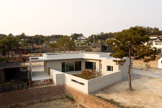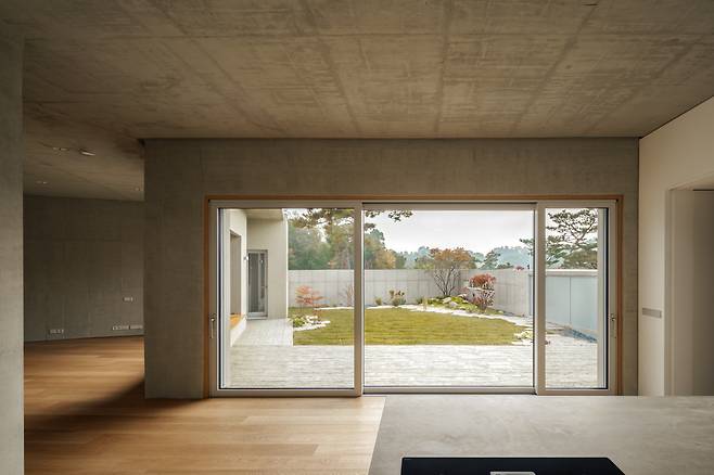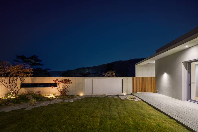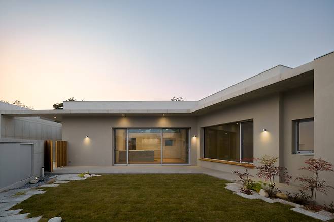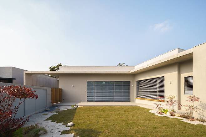건축주 부부는 오랫동안 전원주택 생활을 꿈꾸고 있었다. 집을 짓기 전에 4년 동안 전원주택 생활을 한 경험이 있었고, 그 경험을 바탕으로 집에 대한 생각을 다시 정리하게 됐다. 아름다운 자연 풍경보다는 생활이 편리하고 안전한 환경이 보장돼야 한다고 생각했다. 더욱이 한때 발을 다쳐 목발을 사용할 때 이동이 불편했던 적이 있었기에 “건강한 생활을 영위할 수 있는 지속 가능한 집을 짓고 싶었다”고 강조했다. 결과적으로 마당을 통해 집안 어디든 출입할 수 있도록 문턱이 없고 단아하면서도 세련된 멋을 지닌 집을 구상하게 됐다.