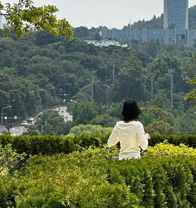하의인 치마 역시 블랙으로 통일해 깔끔하면서도 대비가 확실해 눈길을 끌어요.