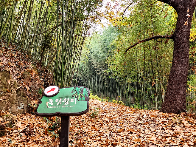 단풍이 떨어진 숲 사이로 퍼지는 낙엽 냄새